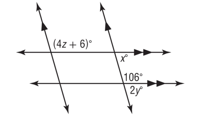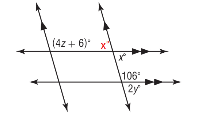 In the figure above, (4z + 6)° and x° are consecutive interior angles, they are supplementary.