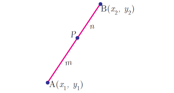 Let A(x1, y1) and B(x2, y2) be two distinct points such that point p(x, y) divides AB internally in the ratio m : n.
