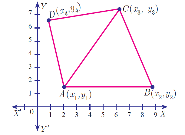 Let A(x1, y1), B(x2, y2), C(x3, y3) and D(x3, y3) be the vertices of a quadrilateral.