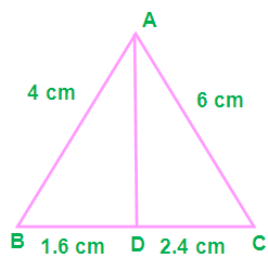 (i) AB = 4 cm, AC = 6 cm, BD = 1.6 cm and CD = 2.4 cm