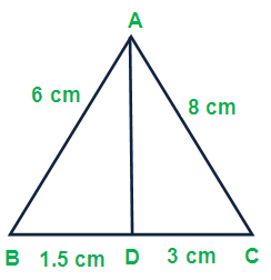 (ii) AB = 6 cm, AC = 8 cm, BD = 1.5 cm and CD = 3 cm