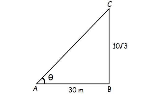Find the angle of elevation of the top of a tower from a point on the ground, which is 30 m away from the foot of a tower of height 10√3 m.