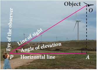 The angle of elevation is an angle formed by the line of sight with the horizontal when the point being viewed is above the horizontal level. That is, the case when we raise our head to look at the object.