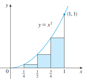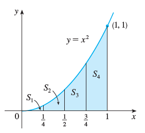 We can approximate each strip by that has the same base as the strip and whose height is the same as the right edge of the strip. Each rectangle has the width of 1/4.