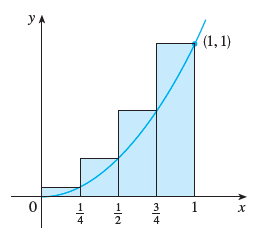 The function y = x2 at the left endpoints of the sub intervals [0, 1/4], [1/4, 1/2] [1/2, 3/4] and [3/4, 1].