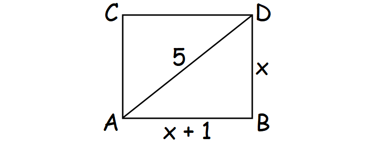 4. The difference between the length and width of a rectangle is 1 cm. If the length of one of the diagonals is 5 cm, then find the area of the rectangle.