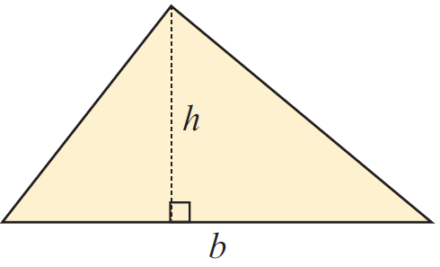 The area of a triangle with base b and height h is given