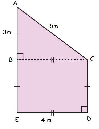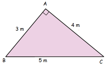 A right angled triangle has sides of length 3 m, 4 m and 5 m.