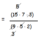 (15 ⋅ 7 ⋅ 3) / (9 ⋅ 5 ⋅ 2) =