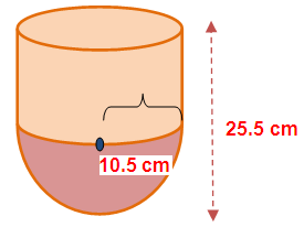 A solid is in the shape of a cylinder surmounted on a hemisphere. If the diameter and the total height of the solid are 21 cm,25.5 cm respectively, then find its volume.