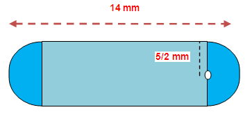 A capsule is in the shape of a cylinder with two hemispheres stuck to each of its ends. If the length of the entire capsule is 14 mm and diameter of the capsule is 5 mm, find its surface area.