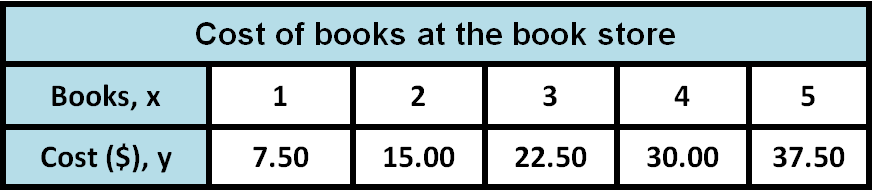 Alex is choosing between buying books at the bookstore or buying online versions of the books for his tablet. The cost, y dollars, of ordering books online for x books is ya=a6.95xa+a1.50. The cost of buying the books at the bookstore is shown in the table. Which method of buying books is more expensive if Quentin wants to buy 6 books ?
