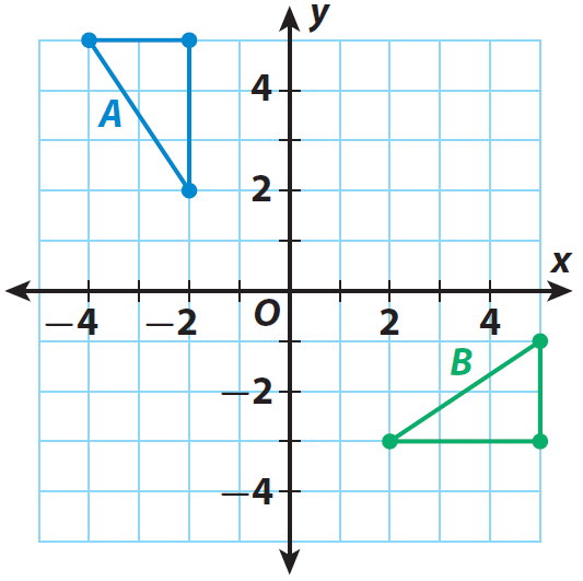 Any sequence of transformations that changes figure A into figure B will need to include a rotation. A 90° counterclockwise rotation about the origin would properly orient figure A, but not locate it in the same position as figure B.