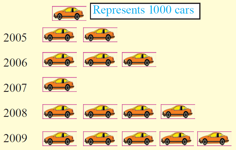 Pictograph of the manufacture of cars in a car factory during the years 2005 to 2009.