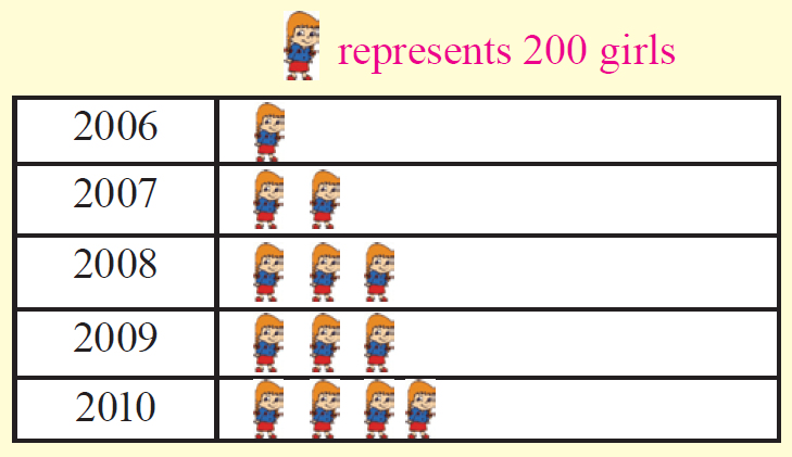 Pictograph of the total number of girls studied in a school in the years 2006 to 2010.
