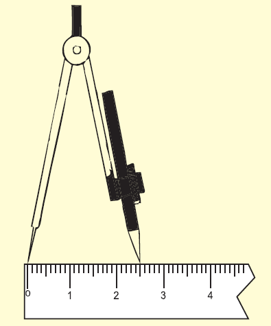 With the help of a compass, measure 2.5 cm as shown in the figure.