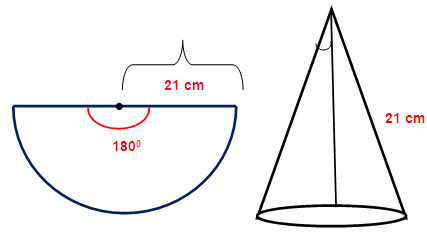 The central angle and radius of a sector of a circular disc are 180 degree and 21 cm respectively. If the edges of the sector are joined together to make a hollow cone, then find the radius of the cone.