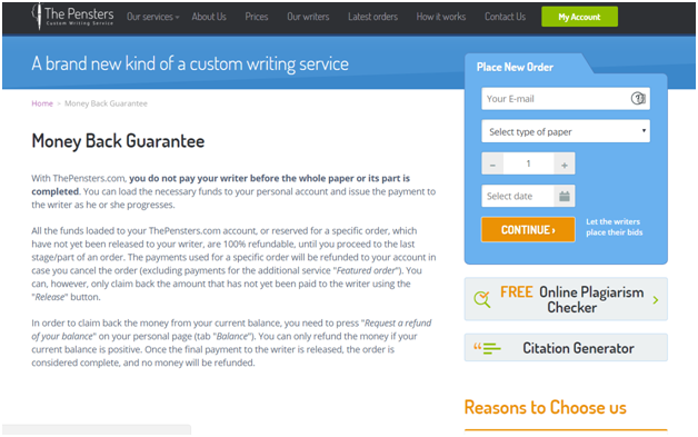 ThePensters.com knows that not every custom essay is made perfectly to their customer’s standards, even if they might wish they were. Because of this, the website allows refunds. This is great news for anyone who has high standards for custom essay writing services, or who may be nervous about using one. If the customer changes their mind, they get their money back. It’s as simple as that.
