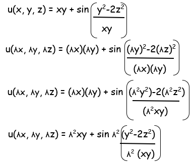 Let A = {(x, y) a < x < b, c < y < d} ∈ ℝ2, F : A-> ℝ, we say that F is a homogeneous function on A, if there exists a constant P such that F(λx, λy) = λp f(x, y) for all λ∈ℝ such that (λx, λy)∈A. This constant is called degree of F.