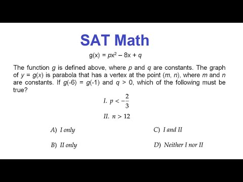 The function g is defined above, where p and q are constants. The graph of y = g(x) is parabola that has a vertex at the point (m, n), where m and n are constants. If g(-6) = g(-1) and q > 0, which of the following must be true?