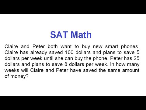 Claire and Peter both want to buy new smart phones. Claire has already saved 100 dollars and plans to save 5 dollars per week until she can buy the phone. Peter has 25 dollars and plans to save 8 dollars per week. In how many weeks will Claire and Peter have saved the same amount of money?