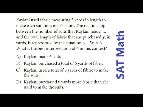 Kaylani used fabric measuring 5 yards in length to make each suit for a men’s choir. The relationship between the number of suits that Kaylani made, x, and the total length of fabric that she purchased y, in yards, is represented by the equation y - 5x = 6. What is the best interpretation of 6 in this context?
