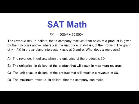 The revenue f(x), in dollars, that a company receives from sales of a product is given by the function f above, where x is the unit price, in dollars, of the product. The graph of y = f(x) in the xy-plane intersects x-axis at 0 and a. What does a represent?