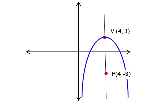 Here, vertex (h, k) = (4, 1) and a = 4.