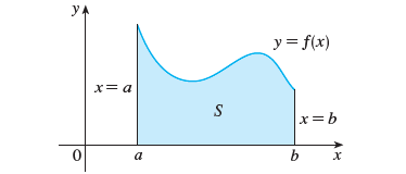 Consider the function y = f(x) from a to b. This means that S illustrated is the picture given below is bounded by the graph of a continuous function f, the vertical lines x = a, x = b and x axis.
