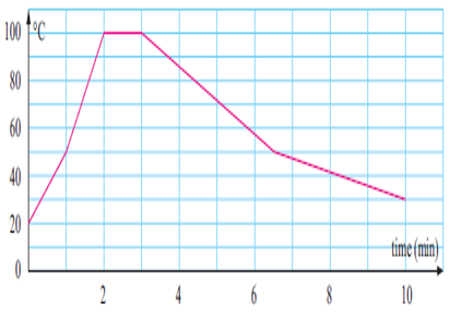(e) After 3 minutes the temperature is decreasing.
