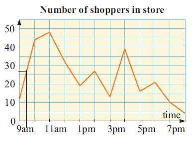 Managers of a retail store conduct a customer count to help them decide how to roster their sales staff. The results are shown in the line graph.