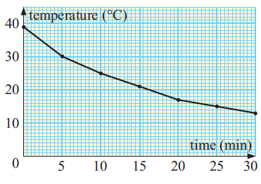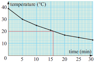 When a bottle of soft drink was placed in a refrigerator, its temperature was measure d at 5-minute intervals. The results are graphed alongside.