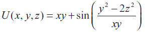 w(x, y, z) = log[(5x3y4+7y2xz4-75y3z4)/(x2+y2)]