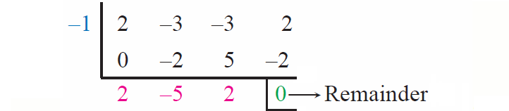 Let p(x) = x3 + 2x2 - x - 4 be the dividend and q(x) = x + 2 be the divisor. We shall find the quotient s(x) and the remainder r, by proceeding as follows.