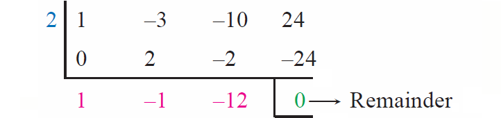 If p(x) = x3 - 3x2 - 10x + 24, then evaluate p(2).