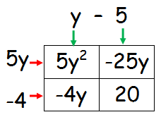 5y2 - 29y + 20 = (5y - 4)(y - 5)
