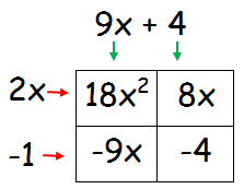 18x2 - x - 4 = (2x - 1)(9x + 4)