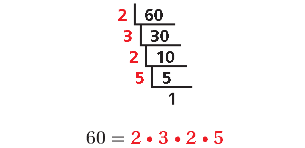 Choose a prime factor of 60 to begin. Keep dividing by prime factors until the quotient is 1.