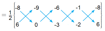= (1/2)[(0 + 27 + 12 - 6) - (-54 + 0 + 3 + 16)]