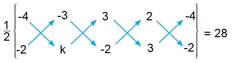 Find the value of k, if the area of a quadrilateral is 28 sq. units, whose vertices are (–4, –2), (–3, k), (3, –2) and (2, 3)