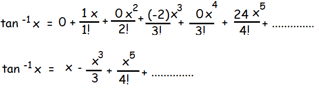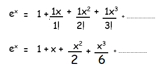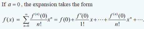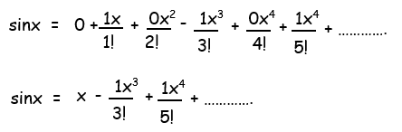 f(x) = f(0) + [f'(0)/1!]x + [f''(0)/2!] x2 + [f'''(0)/3!] x3 + ..........
