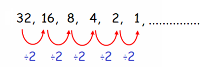 32, 16, 8, 4, 2, 1, ..........