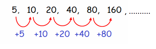 5, 10, 20, 40, 80, 160, .........