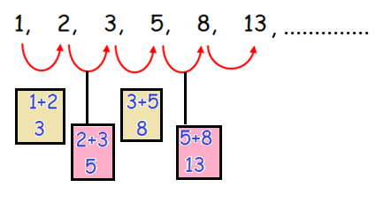 1, 2, 3, 5, 8, 13, .............