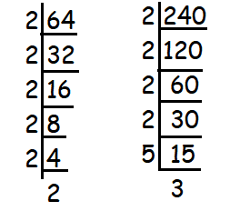 64 = 26 and 240 = 24 ⋅ 5 ⋅ 3