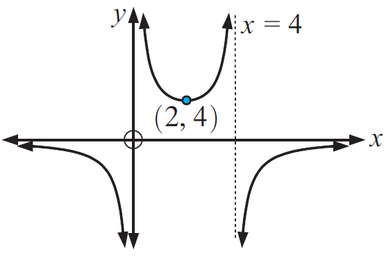 (i) increasing 2 < x < 4 (since we have vertical asymptote at x = 4).