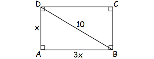 We can find the length of diagonal BD in the rectangle ABCD above using Pythagorean Theorem in the right ΔABD.