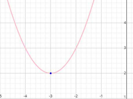 a = 1 > 0, the parabola is open upward, then it will have minimum value. Vertex of parabola (h, k) is (-3, 2)