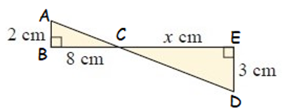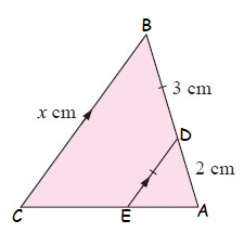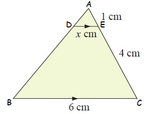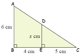 AB = 6 cm, DE = x cm, EC = 5 cm, BC = 9 cm