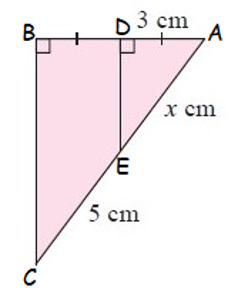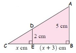 AB = 5 cm, DE = 2 cm, EC = x cm, BC = 2x+3 cm